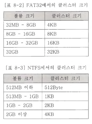 윈도우 시스템에서 디스크를 포맷할 때 클러스터의 크기를 지정한다. 클러스터의 크기를 임의로 지정할 수도 있지만 기본 할당 크기를 선택할 경우 볼륨 크기에 따라 미리 정의된 클러스터의 크기가 할당된다.