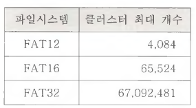 FAT12(2의 12제곱)의 경우 12비트를 사용하여 클러스터의 위치를 표현하므로 최대 4,096개의 클러스터를 표현할 수 있다. 하지만 미리 예약된 12개의 클러스터가 존재하기 때문에 최대 4,084개의 클러스터를 표현할 수 있다.