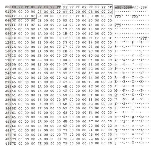 FAT32 파일 시스템에서 FAT 영역의 첫 번째 섹터를 덤프한 결과이다. FAT32인 경우 4 바이트를 FAT Entry 로 사용하기 때문에 한 섹터당 128개의 FAT Entry 로 표현할 수 있다.
