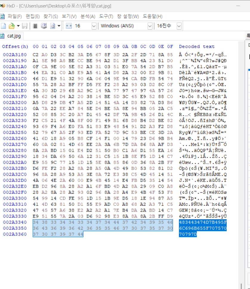 이미지 편집기로 명도나 색조를 조정해도 변화가 없어 HxD로 열었다.