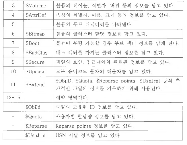 미래를 위해 예약해 둔 MFT Entry 12-15번 영역