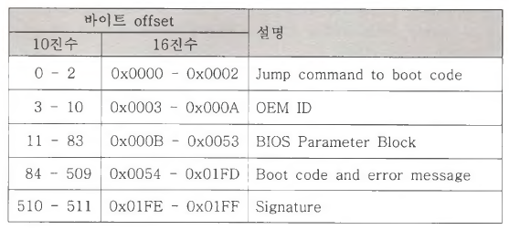 510 - 511 바이트에는 부트 섹터 끝을 나타내는 시그니처[0x55AA]가 위치한다.