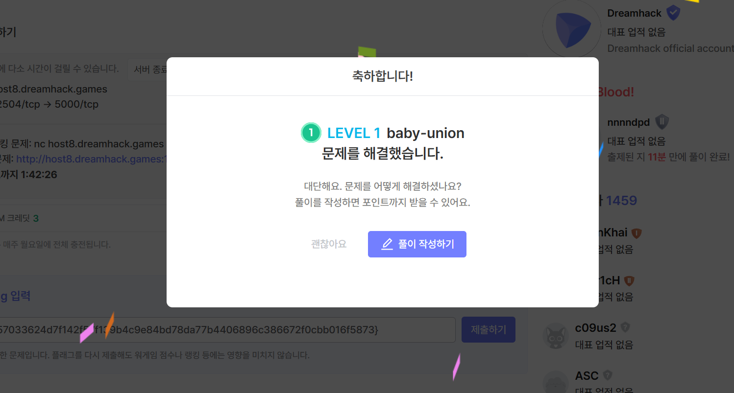 [워게임] baby-union