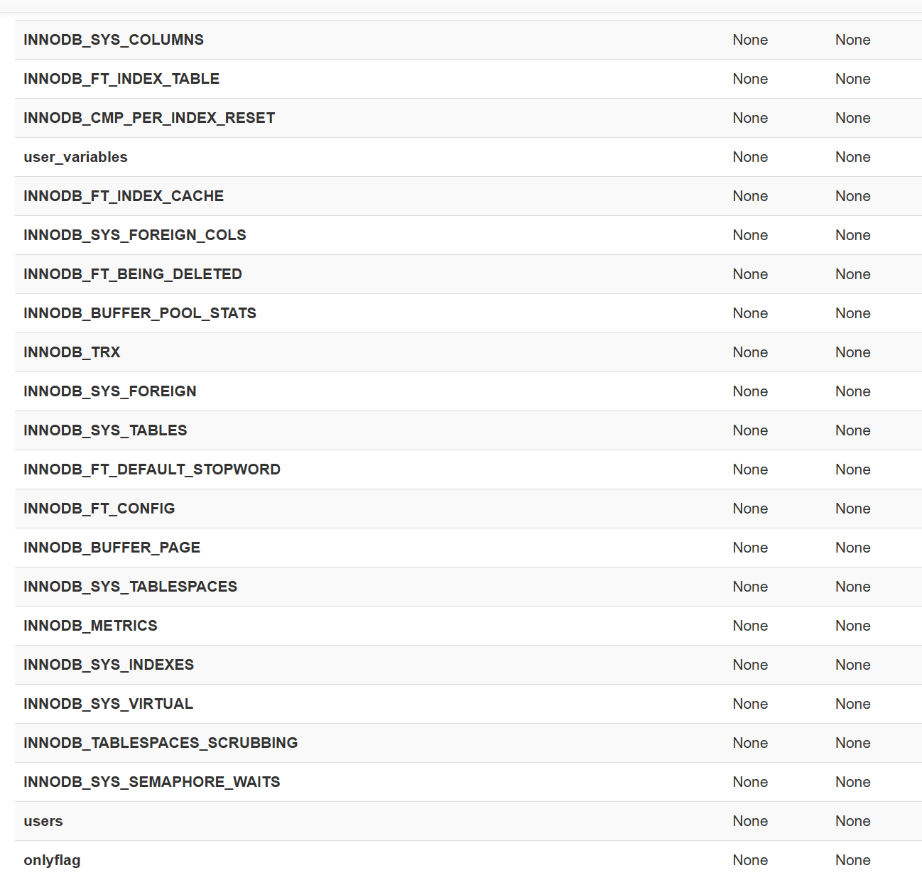 이 명령어를 입력하면 onlyflag라는 테이블의 컬럼을 볼 수 있다.